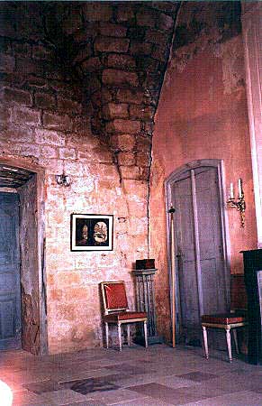 The gallery takes all of the upper level of the castle. It has a high double vaulted ceiling. By its size and living room character, this large open space has been often split for the convenience of the ones living there. It was certainly designed from the beginning to allow such partitioning which still today fit its dimensions.